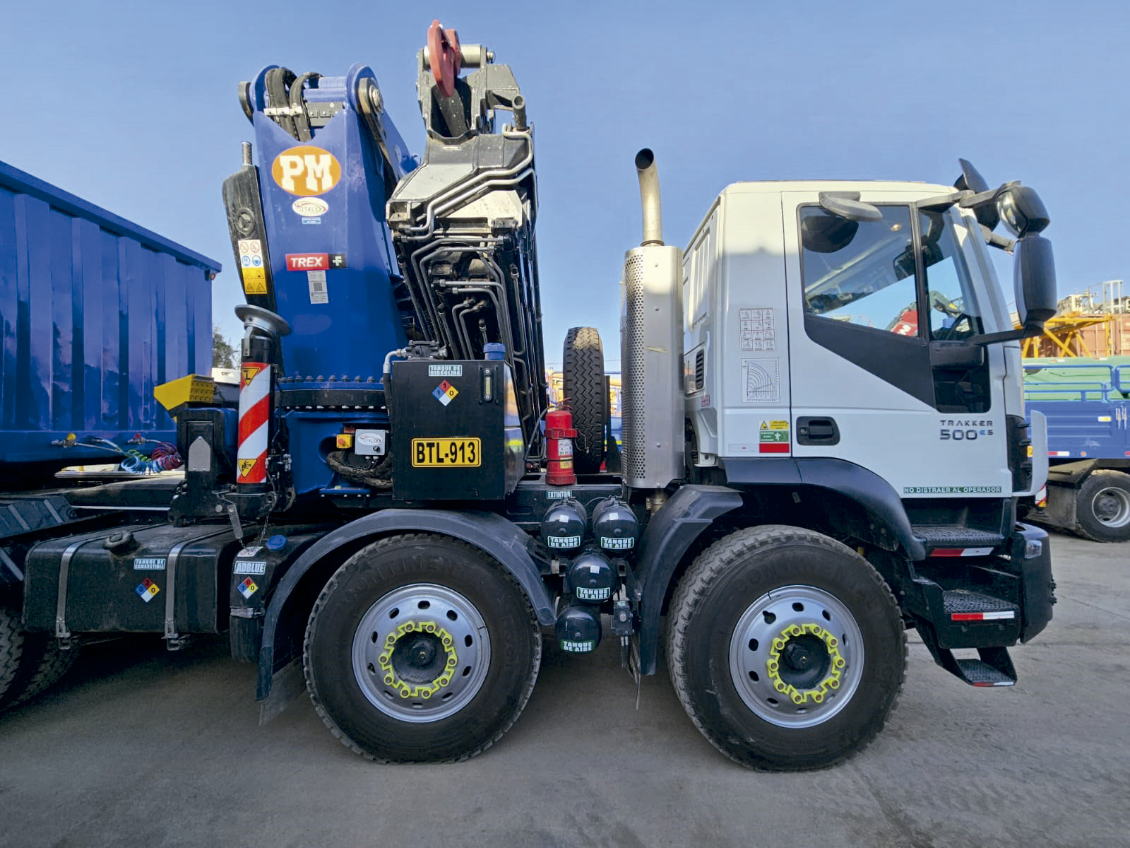 - Contamos con un Tracto IVECO que cuenta con una grúa de brazo articulada PM 100 SP.
